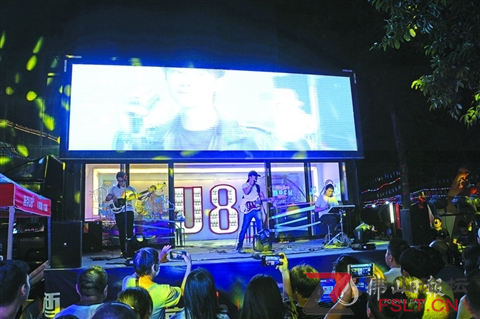 燕京啤酒大篷車(chē)前,人頭攢動(dòng)。這是燕京啤酒大篷車(chē)的廣東首秀,免費(fèi)試飲、買(mǎi)二贈(zèng)一、集贊換啤酒、酷爽U8音樂(lè)趴等節(jié)目吸引眾多市民參與。