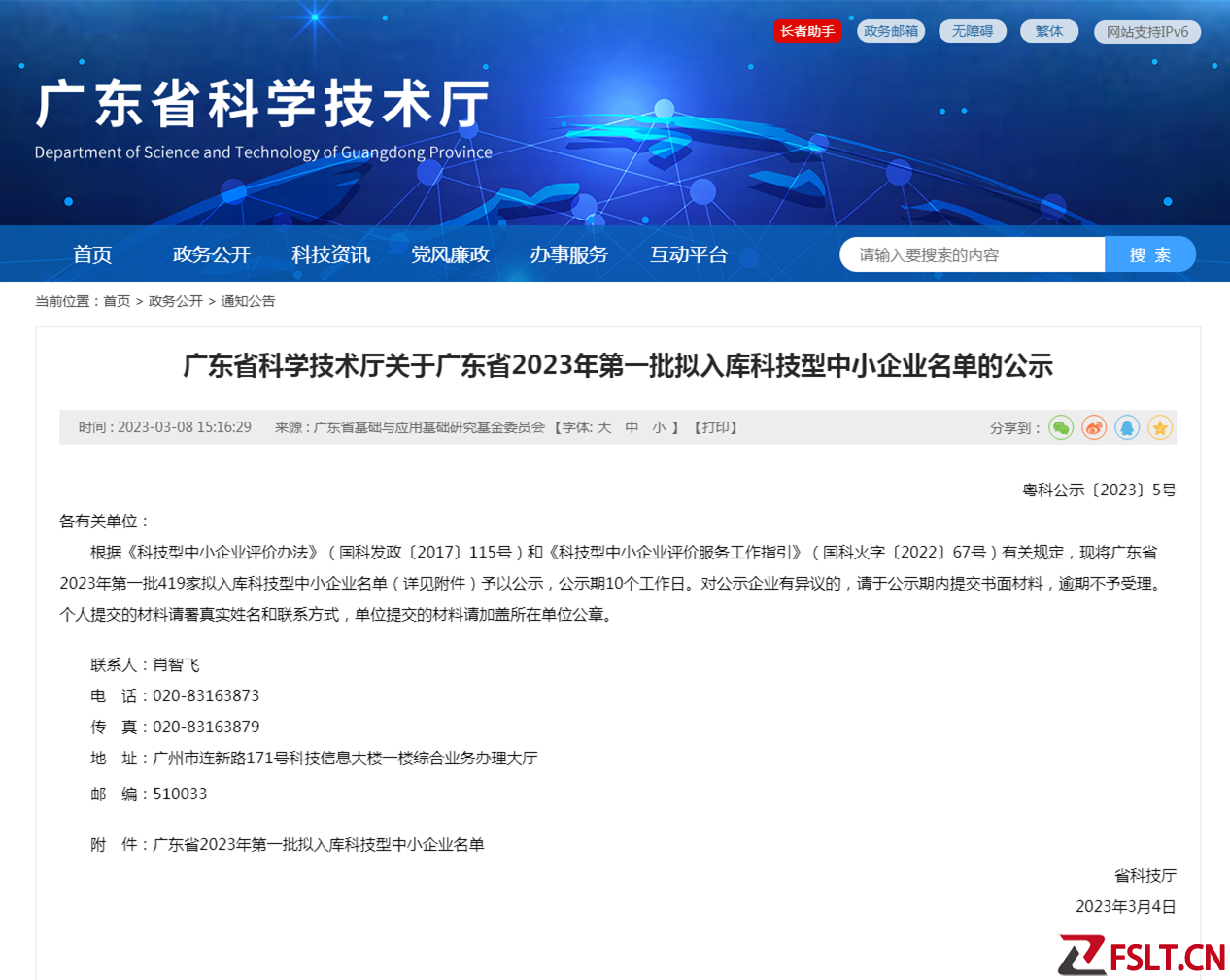 近日,廣東省科學(xué)技術(shù)廳發(fā)布《廣東省科學(xué)技術(shù)廳關(guān)于廣東省2023年第一批擬入庫(kù)科技型中小企業(yè)名單的公示》。根據(jù)《科技型中小企業(yè)評(píng)價(jià)辦法》(國(guó)科發(fā)政〔2017〕115號(hào))和《科技型中小企業(yè)評(píng)價(jià)服務(wù)工作指引》(國(guó)科火字〔2022〕67號(hào))有關(guān)規(guī)定,現(xiàn)將廣東省2023年第一批419家擬入庫(kù)科技型中小企業(yè)名單(詳見(jiàn)附件)予以公示,公示期10個(gè)工作日。