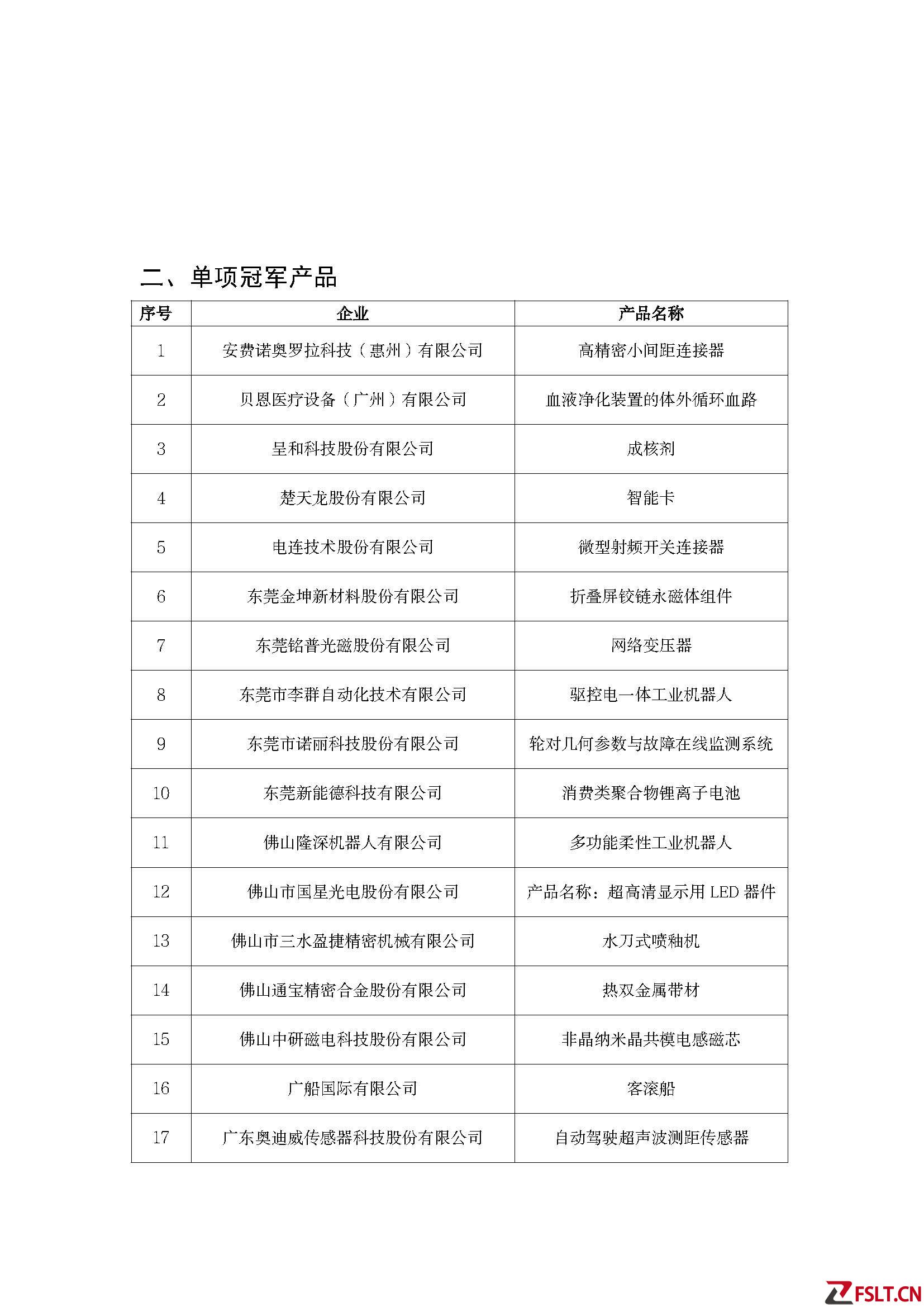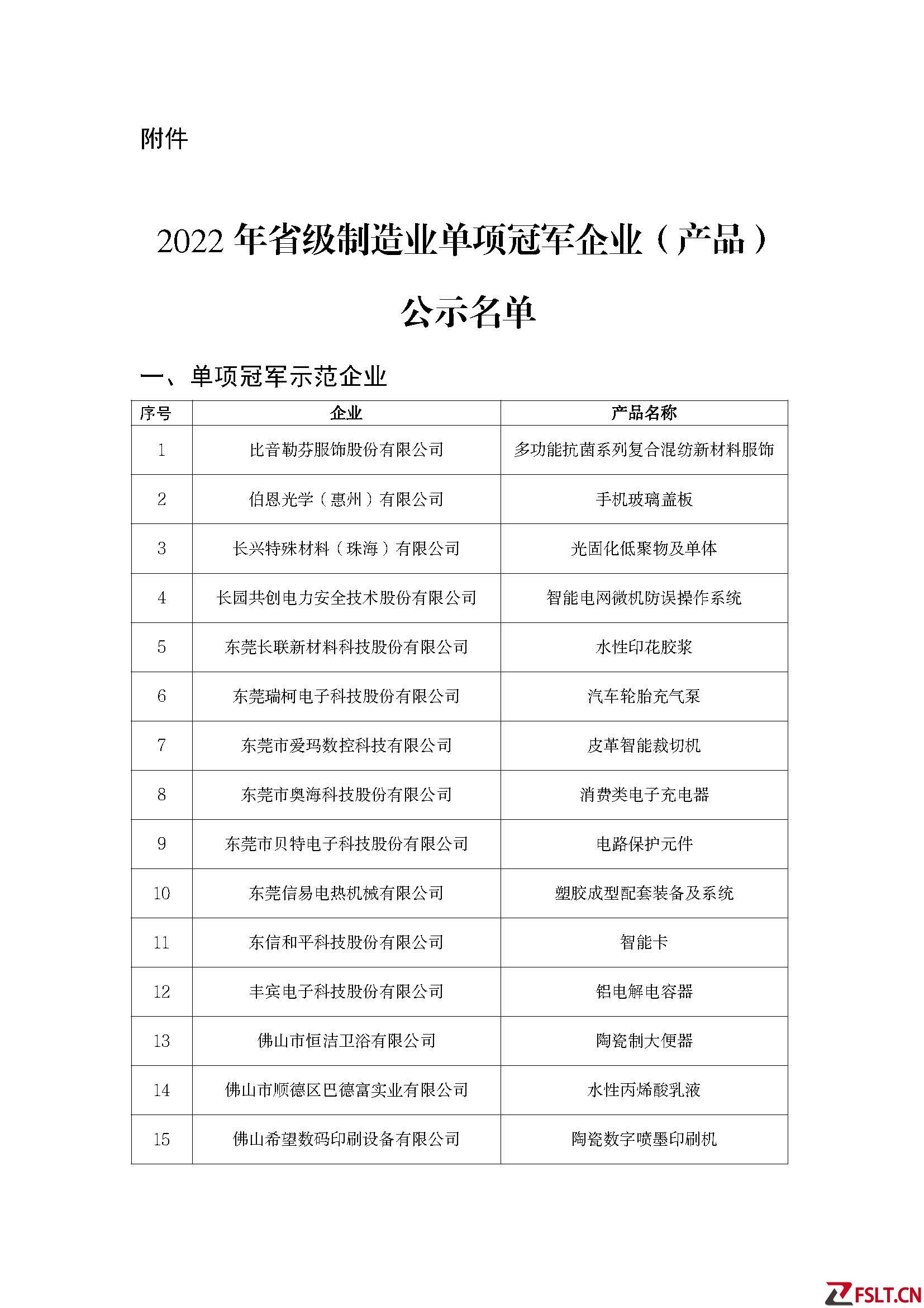 廣東:2022年省級制造業(yè)單項冠軍企業(yè)(產(chǎn)品)公示名單
