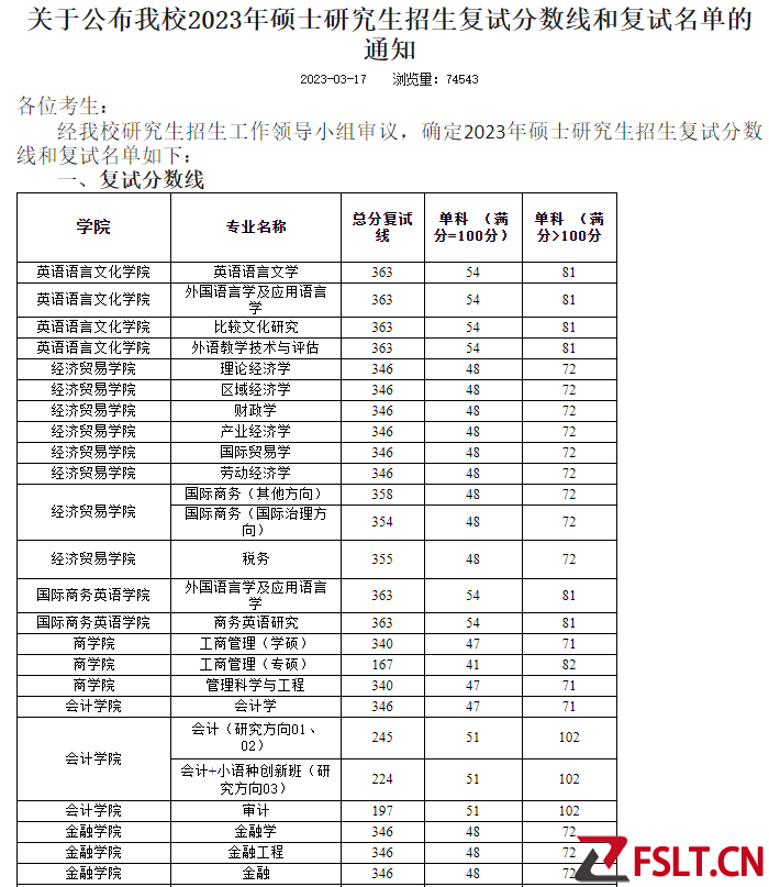 廣東外語外貿(mào)大學(xué)2023年學(xué)校各專業(yè)復(fù)試分?jǐn)?shù)線!