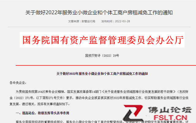 國資委發(fā)布做好2022年服務(wù)業(yè)小微企業(yè)和個體工商戶房租減免工作的通知