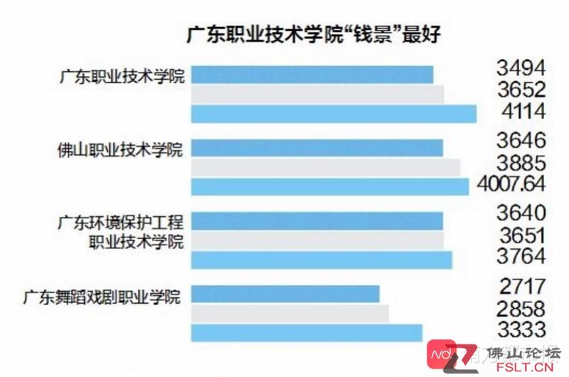高職、??圃盒5漠厴I(yè)生平均起薪也在穩(wěn)步提升中。根據(jù)4所學(xué)校已公布的平均薪酬數(shù)數(shù)據(jù),廣東職業(yè)技術(shù)學(xué)院、佛山職業(yè)技術(shù)學(xué)院、廣東環(huán)境保護(hù)工程職業(yè)技術(shù)學(xué)院和廣東舞蹈戲劇職業(yè)學(xué)院幾所院校均有所突破。
