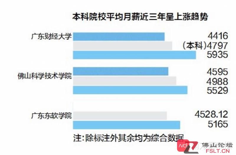 就本科畢業(yè)生來看,佛山幾所本科院校2019屆畢業(yè)生平均起薪超過5000元,其中包括佛山科學(xué)技術(shù)學(xué)院、廣東東軟學(xué)院和在佛山設(shè)分校區(qū)的廣東財經(jīng)大學(xué),這也是近3年來佛山本科畢業(yè)生平均薪資首次突破五千元大關(guān),位于領(lǐng)跑地位的是廣東財經(jīng)大學(xué),2019屆畢業(yè)生平均起薪達(dá)5935元。