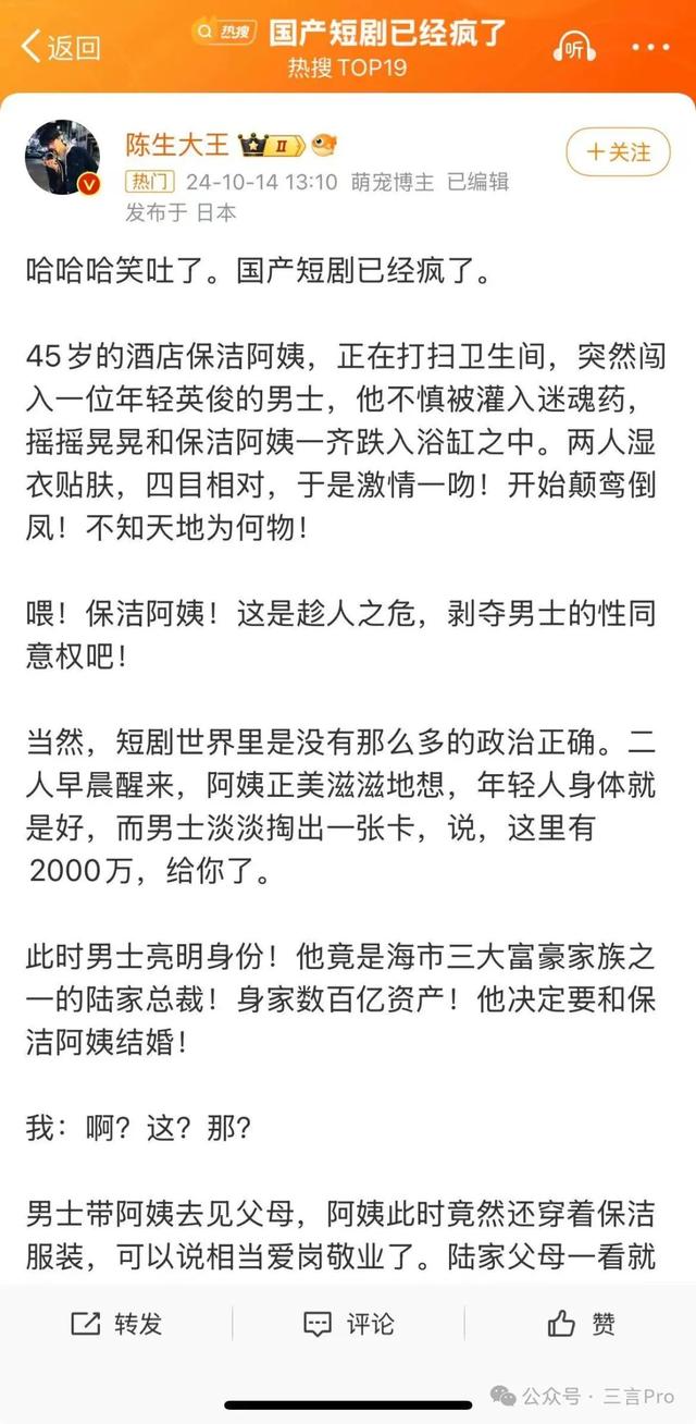 國(guó)產(chǎn)短劇已經(jīng)瘋了:“霸總愛(ài)上絕經(jīng)的我”,女主不是保姆就是保潔