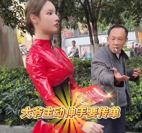 重慶一火鍋店老板娘假扮機(jī)器人發(fā)傳單!大爺追著要,拿到傳單后接著看